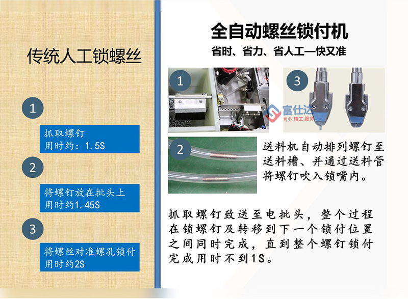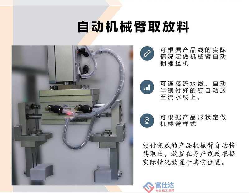 深圳市富仕達(dá)自動化設(shè)備有限公司是國內(nèi)領(lǐng)先的以自動鎖螺絲設(shè)備為核心的自動化設(shè)備制造商,堅持以客戶需求為中心,定制自動化鎖螺絲方案,已有超過4000家企業(yè)采用富仕達(dá)定制的自動鎖螺絲設(shè)備實(shí)現(xiàn)“機(jī)器換人”,節(jié)省大量人力成本。