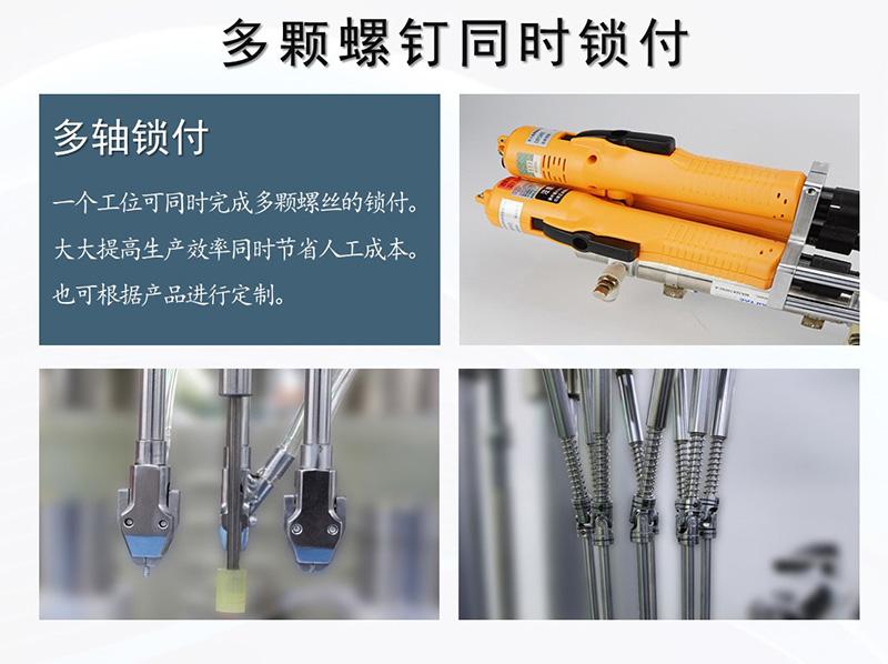 多軸立式自動擰螺絲機(jī)主要由自動送釘機(jī)、多軸鎖付系統(tǒng)、PLC控制系統(tǒng)等組成,內(nèi)置集成作業(yè)臺,體積小、不占地。通過治具固定好產(chǎn)品放置的位置,由設(shè)備自動完成螺絲輸送及緊固工作,根據(jù)產(chǎn)品特點(diǎn)設(shè)計鎖付方案,實(shí)現(xiàn)一次擰好所有螺絲,設(shè)備性能穩(wěn)定,效率高,可替代大量人工重復(fù)勞動,減少企業(yè)成本。