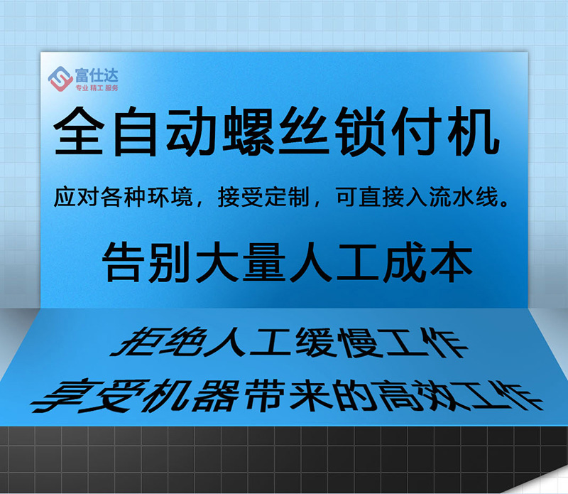 富仕達(dá)擁有獨(dú)立研發(fā)設(shè)計(jì)團(tuán)隊(duì)600多位自動(dòng)化高級(jí)工程師,5000㎡自動(dòng)鎖螺絲機(jī)生產(chǎn)、測(cè)試車(chē)間,專(zhuān)業(yè)售后服務(wù)團(tuán)隊(duì),為客戶(hù)提供方案設(shè)計(jì)、設(shè)備制造、操作培訓(xùn)、售后服務(wù)等一站式服務(wù)。 公司將持續(xù)提升技術(shù)創(chuàng)新和產(chǎn)品服務(wù)方面的優(yōu)勢(shì),堅(jiān)持“專(zhuān)業(yè)、精工、服務(wù)”的企業(yè)理念,聚焦于自動(dòng)鎖螺絲設(shè)備生產(chǎn),通過(guò)系統(tǒng)的一站式解決方案,真正的幫助客戶(hù)提升效率、降低成本,提升客戶(hù)的核心競(jìng)爭(zhēng)力。